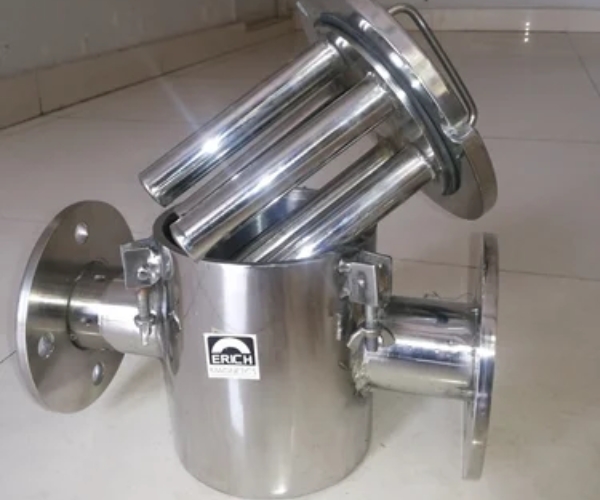 Erich Magnetic Cartridges are designed for inline filtration of liquids to attract and remove iron particles. The magnetic cartridges are placed inside a housing with inlet and outlet connections. During operation, iron particles are captured as liquid passes through the cartridges. Cleaning is easy via the top cover secured with a wing nut. Standard sizes are available for pipelines from 2 inches to 18 inches, with customized sizes also available as per requirements.