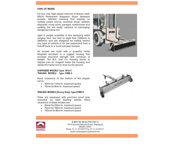 Erich Roller Magnetic Sweepers are designed for efficient removal of tramp iron in small areas and for limited quantities of material. Featuring a handle with a permanent magnetic tube, these sweepers are easy to use and require minimal effort for navigation. The magnetic tube can be easily detached from the handle for cleaning. Customizable as per customer requirements, they provide reliable magnetic separation in industrial applications.